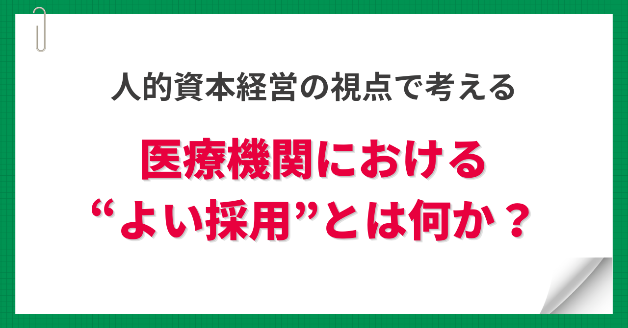 人的資本経営の視点で考える医療機関における“よい採用”とは何か?