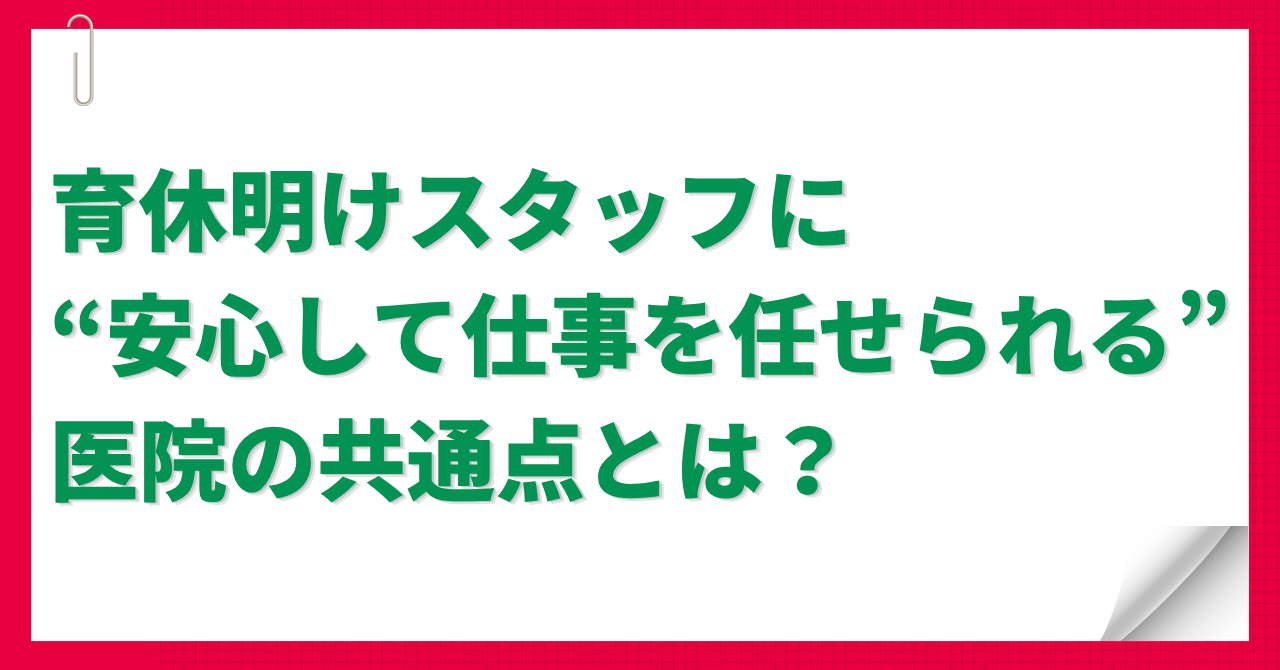 育休明けスタッフに“安心して仕事を任せられる”医院の共通点とは?